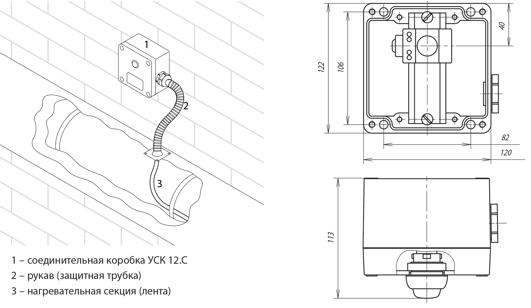 • Коробка позволяет выполнить подключение одного саморегулирующегося нагревательного кабеля.