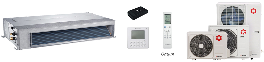 Канальный кондиционер инверторного типа Kentatsu с технологией Full DC Inverter (модели 35, 53, 70) и DC Inverter (модели 105, 140, 165) — гарантия надежности и комфортного и экономичного использования. Устанавливаются скрытым способом в подвесную потолочную конструкцию. Применяются в помещениях различного назначения (гостиницы, медицинские учреждения, торговые залы и др.). Имеют возможность организации подмеса свежего воздуха, а также подключения дополнительных воздуховодов для кондиционирования соседних помещений. Оснащен встроенным модулем Wi-Fi для удаленного управления.