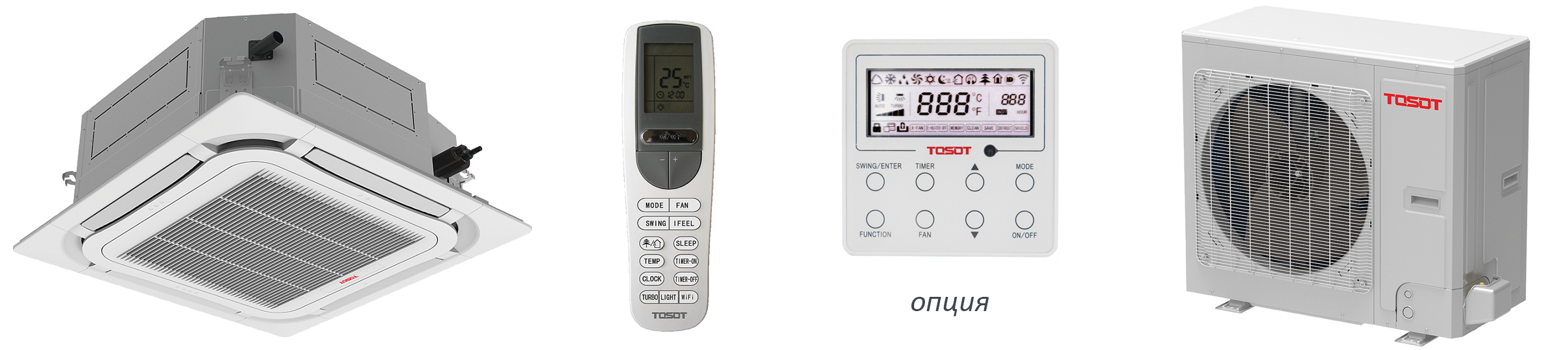 Полупромышленная сплит-система кассетного типа, устанавливается в скрытую или открытую потолочную конструкцию офисных, торговых или других общественных помещений. Full DC Inverter, встроенный дренажный насос, возможность организации притока свежего воздуха. Жалюзи внутреннего блока выпускают воздух в 8 направлениях, создавая круговой поток. Сплит-система укомплектована ИК пультом дистанционного управления с функцией I Feel.