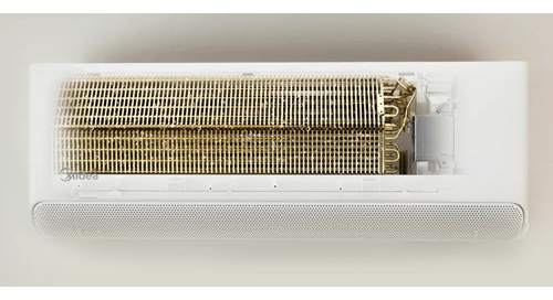 «Golden Fin». Антикоррозийное покрытие теплообменника Golden Fin из диоксида титана. Технология «Golden Fin» значительно улучшает эффективность теплообмена, а также увеличивает срок эксплуатации кондиционеров более чем в 5 раз. Кроме этого, новое покрытие теплообменника позволяет уменьшить аэродинамическое сопротивление воздуха и уровень шума кондиционера.