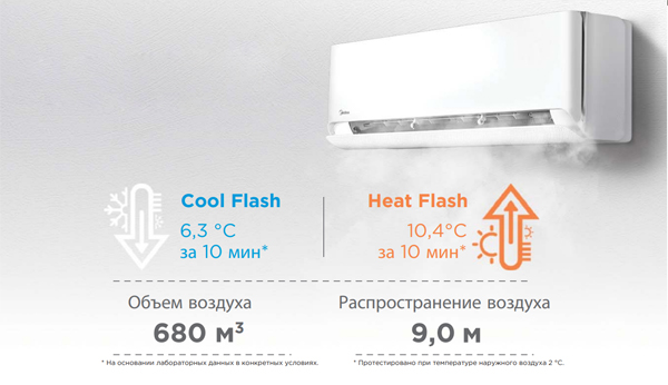 • Cool Flash и Heat Flash мгновенное охлаждение и мгновенный обогрев помещения.
