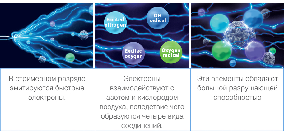 • Flash Streamer — передовая запатентованная технология очистки воздуха. Устройство Flash Streamer генерирует плазменный разряд, который придает огромное ускорение электронам. Пораженные такими электронами вирусы и бактерии разлагаются на фрагменты, окисляются, сталкиваясь с активированными молекулами кислорода и азота, становятся абсолютно безвредными.