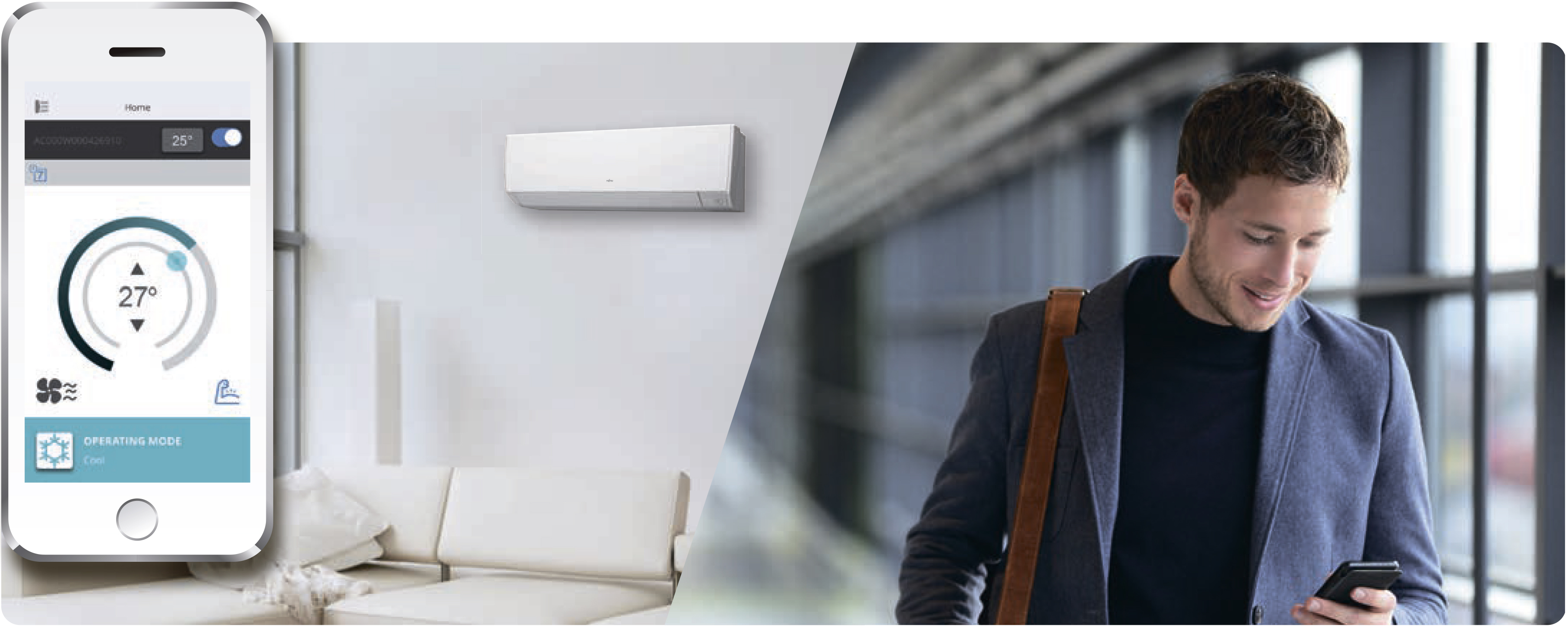 • В данной модели предусмотрена возможность подключения модуля Wi-Fi (опция) для удаленного управления кондиционером через приложение с любого смарт-устройства.