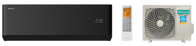 Hisense VIBE PRO CARBON EU DC Inverter — лаконичная инверторная сплит-система в глубоком черном цвете с премиальным матовым акриловым покрытием и строгими геометрическими линиями. Энергоэффективность А++, работа на обогрев до -20°C, встроенный Wi-Fi, уровень шума всего от 21 дБ(А). Идеальный выбор для минималистичных интерьеров и тех, кто ценит архитектурную четкость форм.