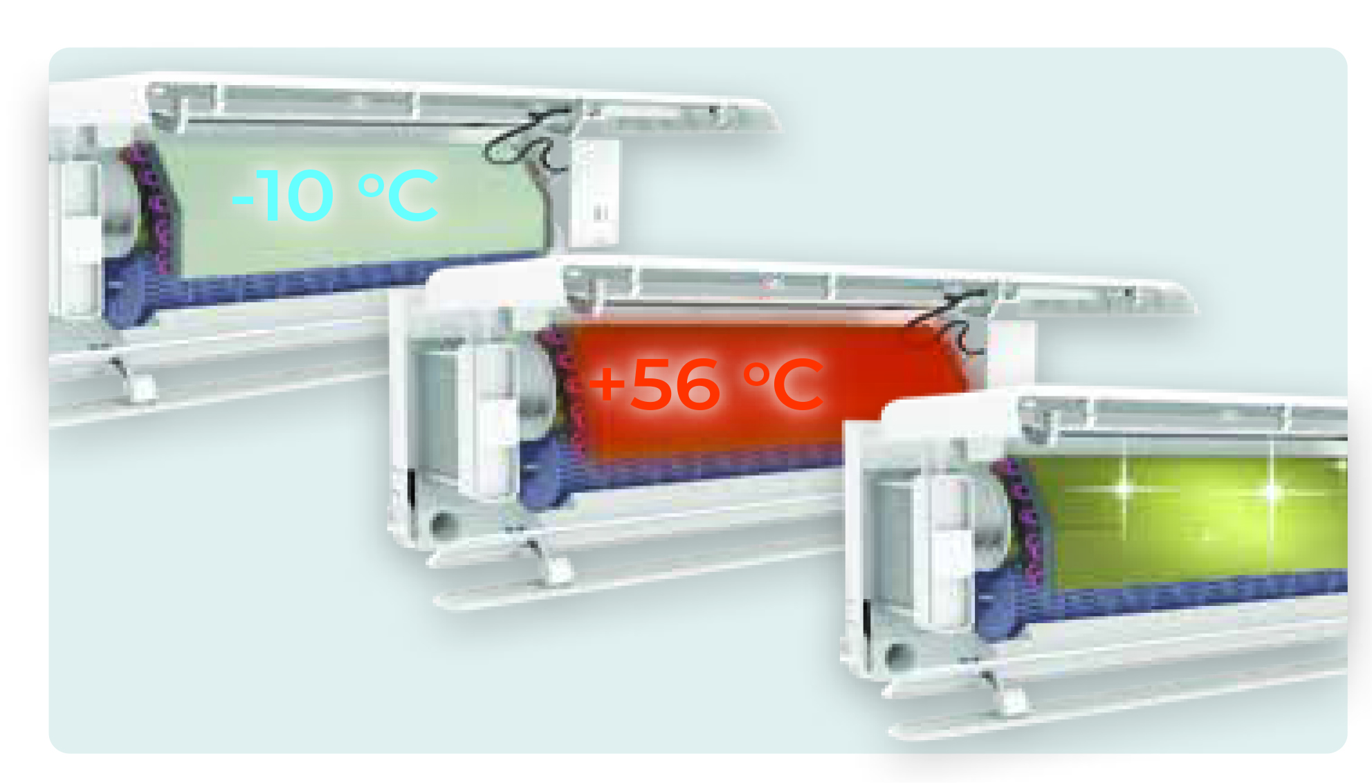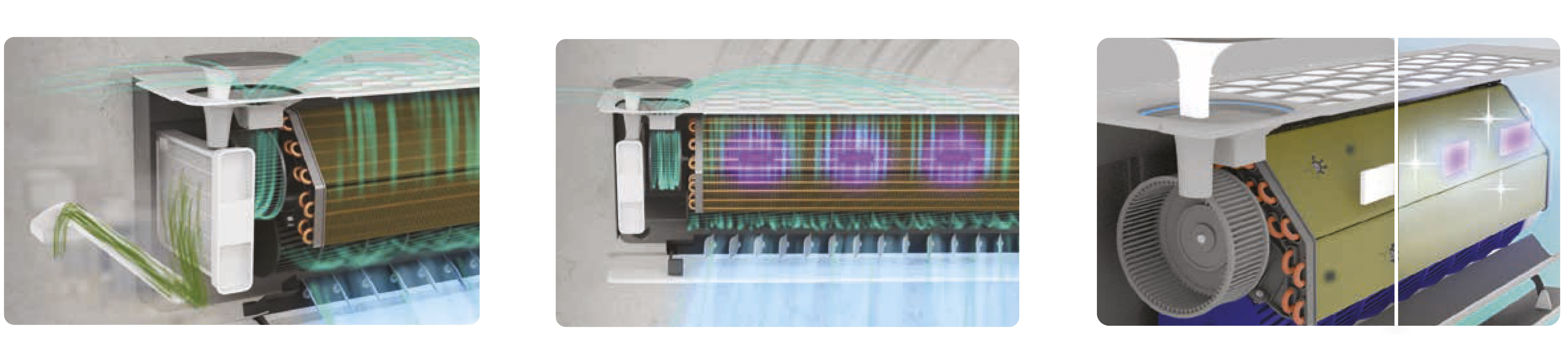 • Система самоочистки внутреннего блока способом заморозки/оттаивания/стерилизации при +56 °С — эффективно справляется с любыми загрязнениями, всегда содержит теплообменник в состоянии идеальной чистоты.