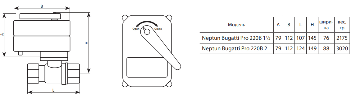 Шаровой кран с электроприводом для труб с большим диаметром Neptun Bugatti Pro 220В - 1 1/2