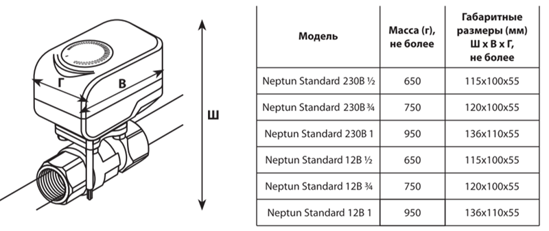 Шаровой кран с электроприводом Neptun Standard 230В 1/2"