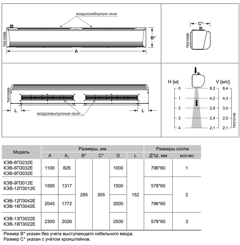 Воздушно-тепловая завеса Тепломаш КЭВ-18П3023Е серии 300 Бриллиант