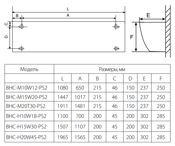 Водяная тепловая завеса Ballu BHC-H20W45-PS2 серии PS2 High