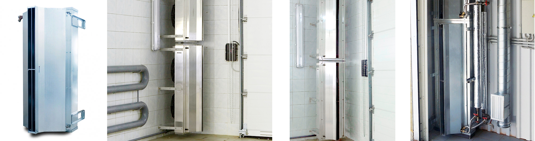 Промышленная тепловая завеса шиберующего (отсекающего) типа из оцинкованной стали с защитой корпуса IP54 (допускается капельная влага, туман). Устанавливается внутри помещения, горизонтально над проемом или вертикально, сбоку от него, как можно ближе к краю. При большой ширине проема можно располагать сразу несколько завес вплотную друг к другу и управлять ими с одного пульта. Применяется в складских помещениях, гаражах, производственных предприятиях, ангарах, самолетных и вертолетных площадках, автомойках и других помещениях большой площади.