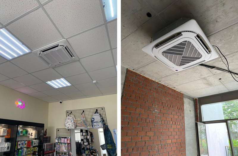 Кассетные сплит-системы предназначены для использования в больших нежилых помещениях: офисы, магазины, рестораны, конференц-залы, спортивные, учебные, медицинские учреждения и др. Отличительная особенность кассетных кондиционеров — потолочная установка внутреннего блока. Обычно он встраивается в потолочную конструкцию или монтируется в открытом виде.