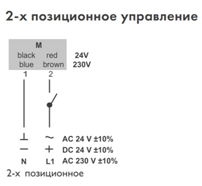 Вал привода соединен с лопаткой клапана. При подаче на привод напряжения вал поворачивает лопатку, регулируя тем самым поступление воздуха через клапан. При отключении питающего напряжения вал с лопаткой возвращаются в исходное (открытое или закрытое) положение с помощью возвратной пружины на редукторе привода. Для отдельных типоразмеров приводов имеется возможность ручного перевода лопатки в требуемое положение с помощью шестигранного ключа.
