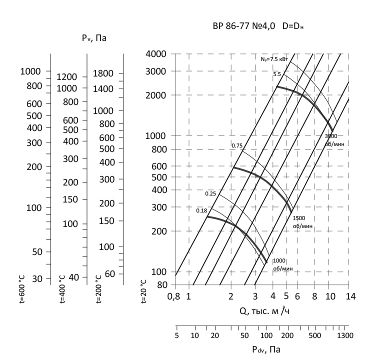 Радиальный вентилятор низкого давления ВР 86-77 / №4,0 / 0,75 кВт / 1500 об./мин. / Прав / 0°